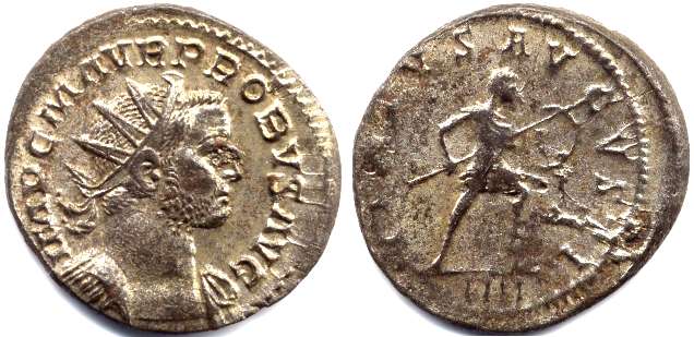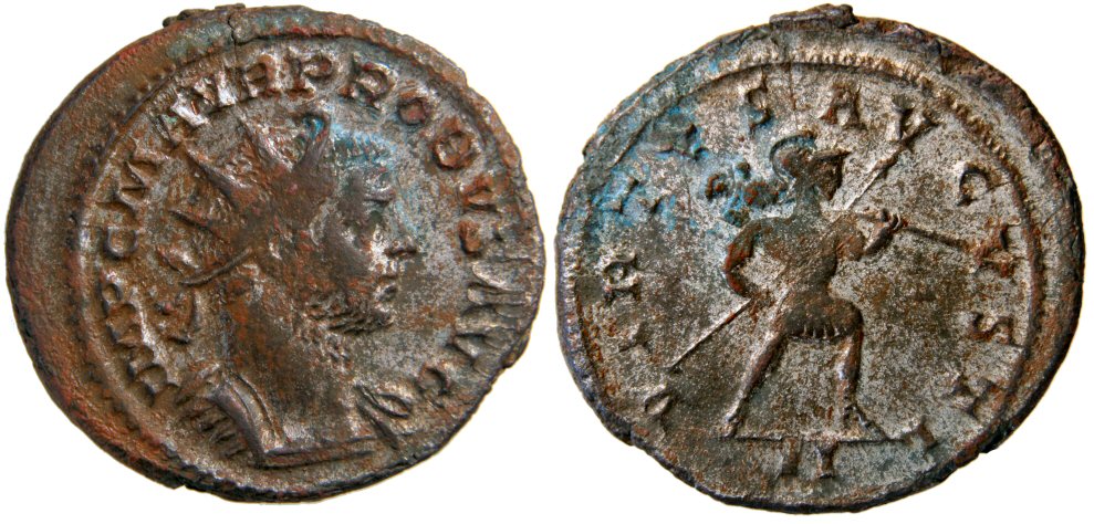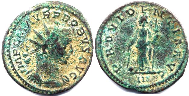 Reverse Legend : VIRTVS AVGVSTI Reverse Type : Mars walking right, holding spear and trophy Obverse Legend : IMP C M AVR PROBVS AVG Bust Type : Radiate, cuirassed bust right References : RIC 58 Bust Type F (Rated Common), Cohen 858, Bastien 154 (6 ex.) NO EXAMPLES YET