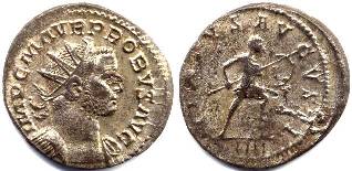 Reverse Legend : VIRTVS AVGVSTI Reverse Type : Emperor walking right, holding spear and shield, treading down captive Obverse Legend : IMP C M AVR PROBVS AVG Bust Type : Radiate, cuirassed bust right References : RIC 56 Bust Type F (Rated Common), Cohen 869, Bastien 155 (13 ex.)