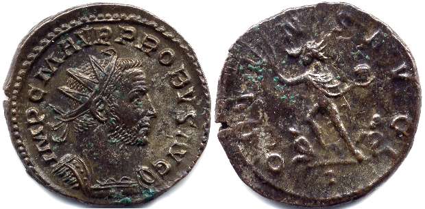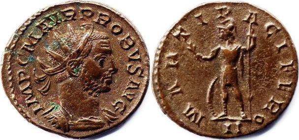 Reverse Legend : LAETITIA AVG Reverse Type : Laetitia standing left, holding wreath and anchor, or staff Obverse Legend : IMP C M AVR PROBVS AVG Bust Type : Radiate, cuirassed bust right References : RIC 31 Bust Type F (Rated Common), Cohen 323, Bastien 173 (3 ex.) NO EXAMPLES YET