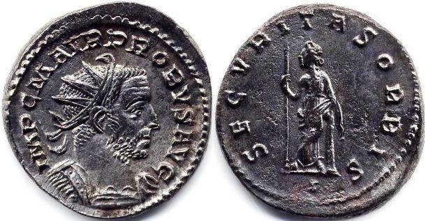 Reverse Legend : SECVRITAS ORBIS Reverse Type : Securitas standing left, legs crossed, leaning on column, holding r. sceptre Obverse Legend : IMP C M AVR PROBVS AVG Bust Type : Radiate, cuirassed bust right References : RIC 49 Bust Type F (Rated Scarce), Cohen 624, Bastien 165 (26 ex.)