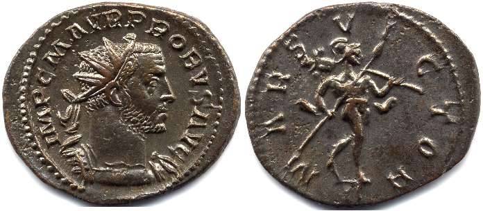 Reverse Legend : MARS VICTOR Reverse Type : Mars walking right, holding spear and trophy Obverse Legend : IMP C M AVR PROBVS AVG Bust Type : Radiate, cuirassed bust right References : RIC 37 Bust Type F (Rated Common), Cohen 337, Bastien 166 (23 ex.)