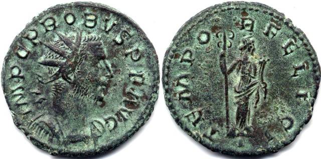 Reverse Legend : SECVRITAS ORBIS Reverse Type : Securitas standing left, legs crossed, leaning on column, holding right sceptre Obverse Legend : IMP C PROBVS . P . F . AVG Bust Type : Radiate, cuirassed bust right References : RIC 50 Bust Type F (Rated Scarce), Cohen 623, Bastien 185 (2 ex.) NO EXAMPLES YET