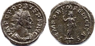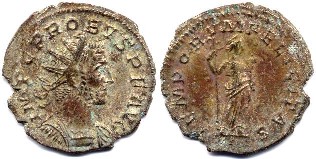 Reverse Legend : ABVNDANTIA AVG Reverse Type : Abundantia, standing right, empting cornucopiae Obverse Legend : IMP C PROBVS . P . F . AVG Bust Type : Radiate, cuirassed bust right References : RIC -, Cohen 1, Bastien 183 (2 ex.) NO EXAMPLES YET