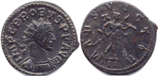 Reverse Legend : MARS VICTOR Reverse Type : Mars walking right, holding spear and trophy Obverse Legend : IMP C PROBVS . P . F . AVG Bust Type : Radiate, cuirassed bust right References : RIC 38 Bust Type F (Rated Common), Cohen 334, Bastien 190 (45 ex.)