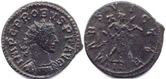 Reverse Legend : FIDES MILITVM Reverse Type : Fides standing left, holding two ensigns Obverse Legend : IMP C PROBVS . P . F . AVG Bust Type : Radiate, draped and cuirassed bust right, seen from the rear References : RIC -, Cohen 255, Bastien 189 (1 ex.) NO EXAMPLES YET