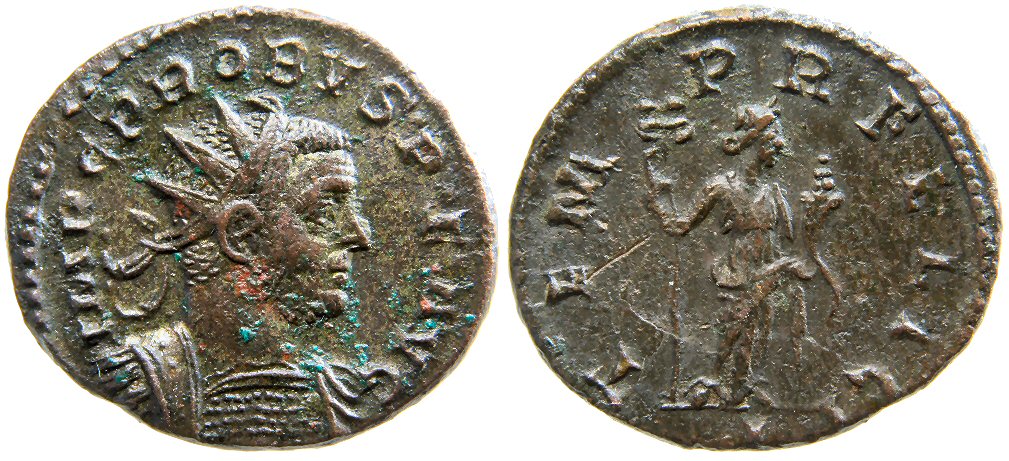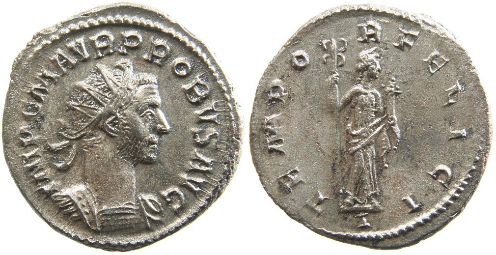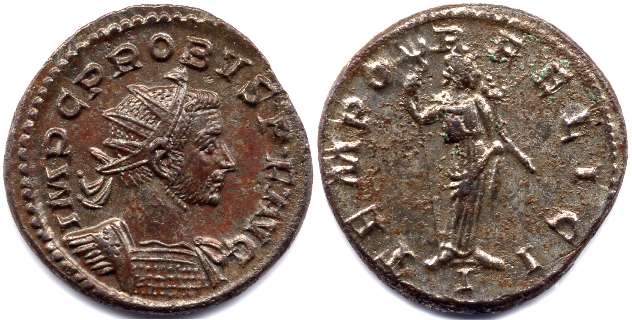 Reverse Legend : SECVRITAS ORBIS Reverse Type : Securitas standing left, legs crossed, leaning on column, holding right sceptre Obverse Legend : IMP C PROBVS . P . F . AVG Bust Type : Radiate, cuirassed bust right References : RIC 50 Bust Type F (Rated Scarce), Cohen 623, Bastien 263 (1 ex.) NO EXAMPLE YET