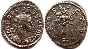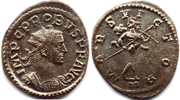 Reverse Legend : MARS VICTOR Reverse Type : Mars walking right, holding spear and trophy Obverse Legend : IMP C M AVR PROBVS AVG Bust Type : Radiate, cuirassed bust right References : RIC 83 Bust Type F (Rated Common), Cohen 337, Bastien 272 (4 ex.) NO EXAMPLE YET