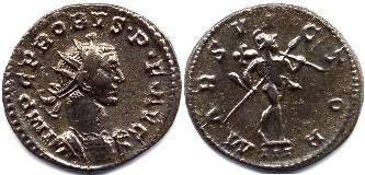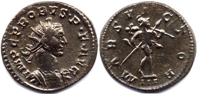 Reverse Legend : MARS VICTOR Reverse Type : Mars walking right, holding spear and trophy Obverse Legend : IMP C M AVR PROBVS AVG Bust Type : Radiate, cuirassed bust right References : RIC 83 Bust Type F (Rated Common), Cohen 337, Bastien 285 (2 ex.) NO EXAMPLE YET