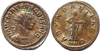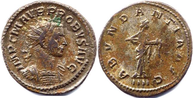 Reverse Legend : ABVNDANTIA AVG Reverse Type : Abundantia standing right, emptying cornucopiae Obverse Legend : IMP C M AVR PROBVS AVG Bust Type : Radiate, cuirassed bust right References : RIC 59 Bust Type F (Rated Common), Cohen 4, Bastien 291 (15 ex.)