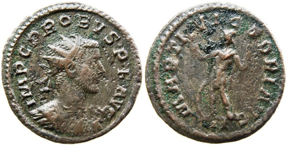 Reverse Legend : MARTI VICTORI AVG Reverse Type : Mars standing left, holding laurel-branch and spear; to left behind him, shield Obverse Legend : IMP C M AVR PROBVS AVG Bust Type : Radiate, draped and cuirassed bust right, seen from the rear References : RIC 88 Bust Type C (Rated Common), Cohen 368, Bastien 317 (5 ex.) NO EXAMPLE YET