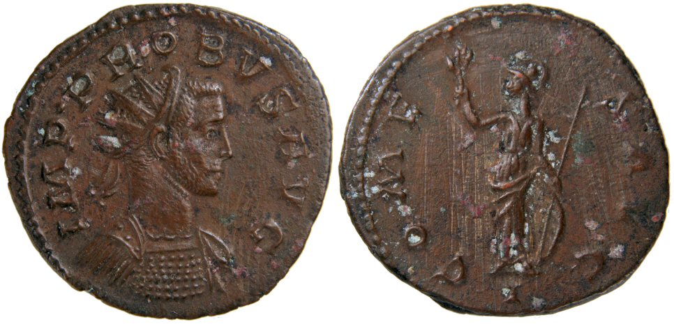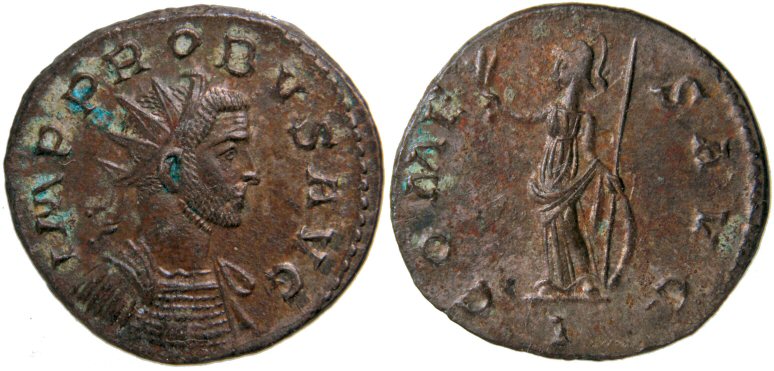 Same reverse legend and type Obverse Legend : IMP PROBVS AVG Bust Type : Radiate, cuirassed bust right References : RIC 67 Bust Type F (Rated Common), Cohen 103, Bastien 344 (4 ex.)