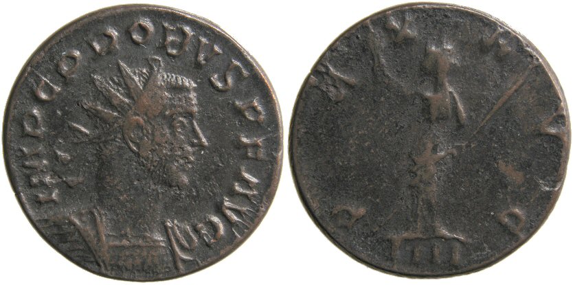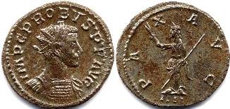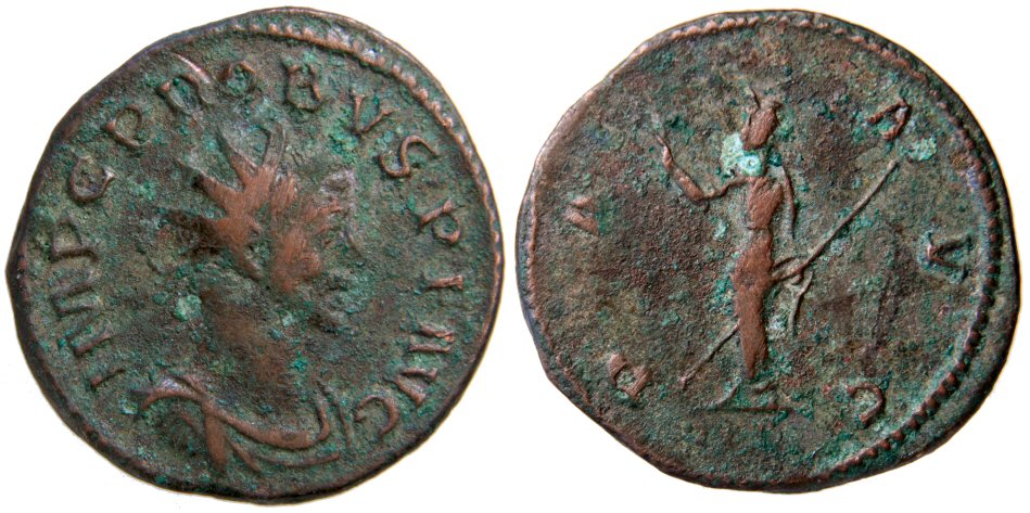 Same reverse legend, type and obverse legend Obverse Legend : IMP C PROBVS P F AVG Bust Type : Radiate, cuirassed bust right References : RIC 91 Bust Type F (Rated Common), Cohen 401, Bastien 367 (2 ex.)