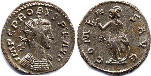 Same reverse legend and type Obverse Legend : IMP C PROBVS AVG Bust Type : Radiate, cuirassed bust right Officina Mark Position : Left field References : RIC -, Cohen 104, Bastien 377 (2 ex.) NO EXAMPLE YET